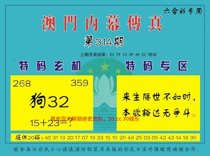 | 318期:九码 | 20.44.29.41.01.49.06.30.03 | 發00中 |