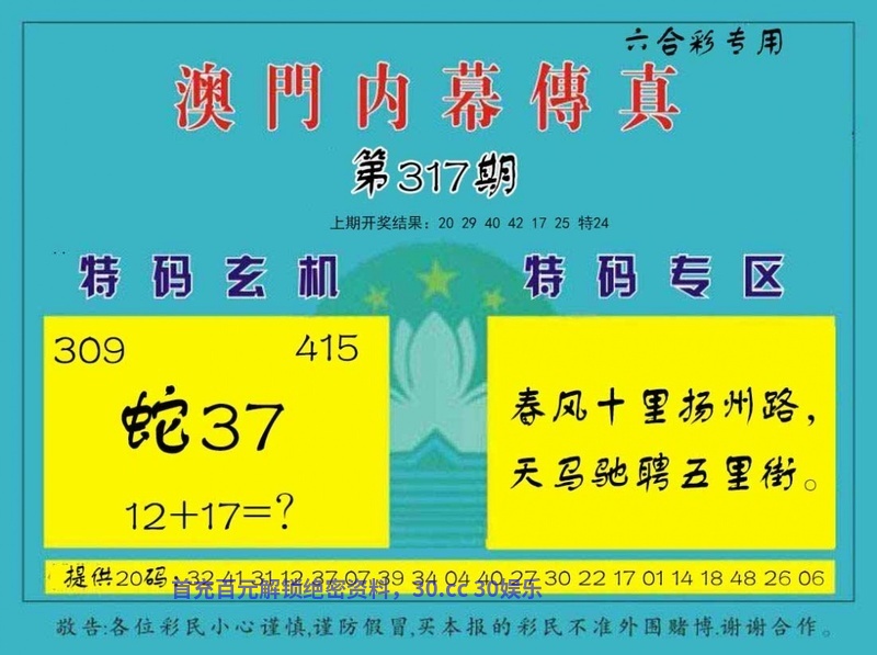 | 318期:七码 | 20.44.29.41.01.49.06 | 發00中 |